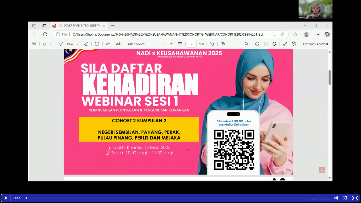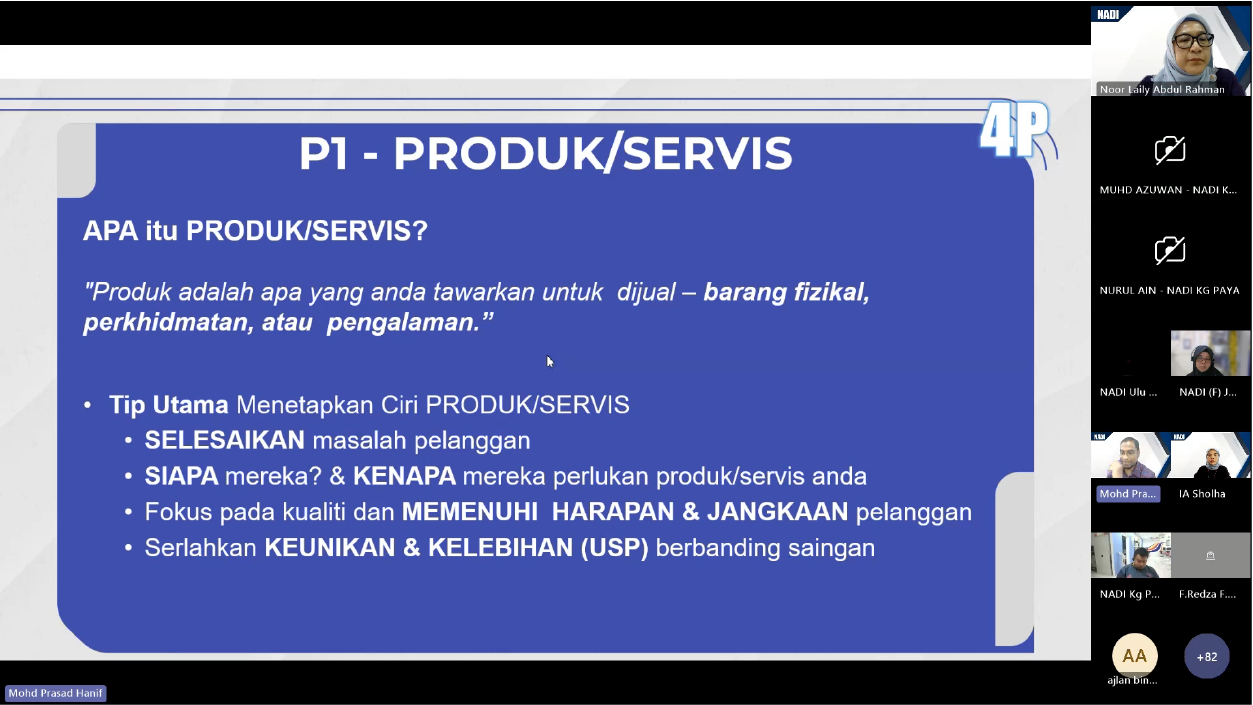 The Webinar NADI Usahawan is a digital learning series organized to develop entrepreneurs within the NADI network through interactive online sessions. The webinars deliver practical guidance on brand building, financial management, and product marketing. Each session brings together community business owners, mentors, and service professionals to encourage knowledge sharing in an open and supportive environment. Participants gain exposure to real marketplace strategies, creative thinking, and hands-on tools that can be applied immediately after the webinar.